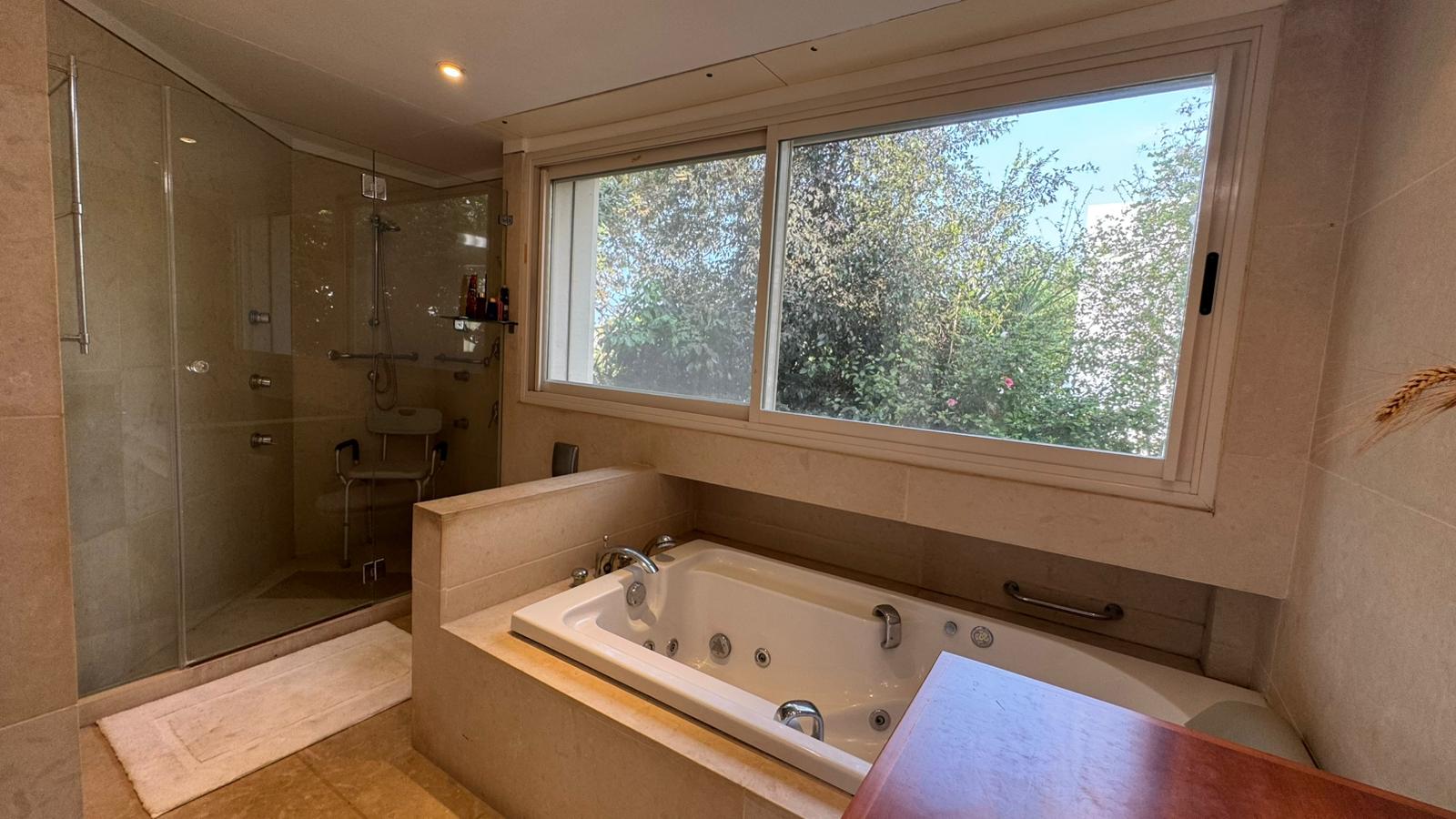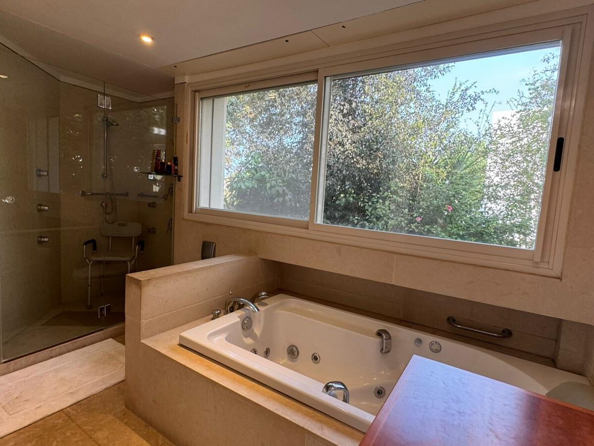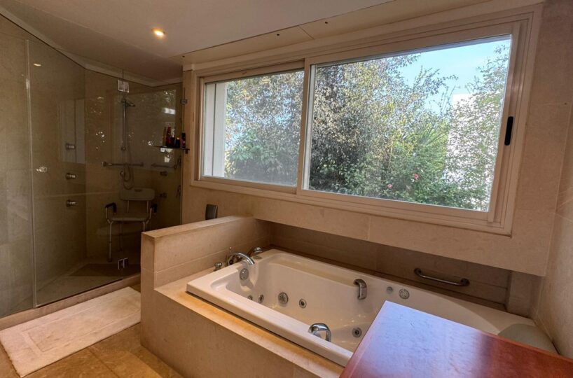 – A luxurious primary suite with a spa-style bathroom, walk-in closet, abundant natural light, and a private terrace overlooking the garden and pool