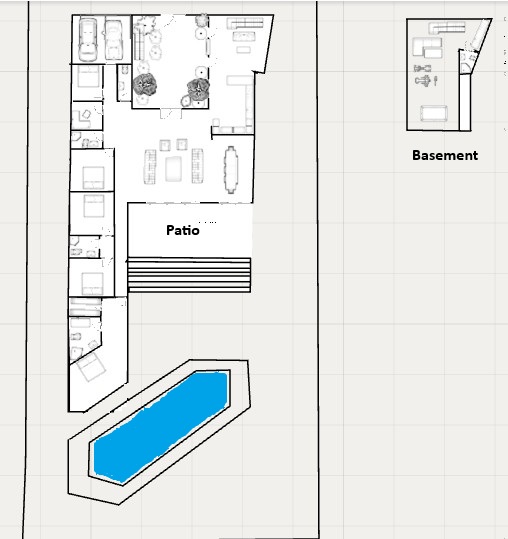 On the right wing, five full bedrooms plus a secure mamad (safe room) offer ample space and comfort. The layout includes: